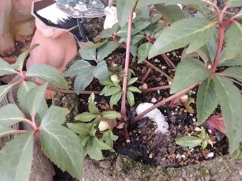 晩秋に植え替えたクリロ、シナモンスノーにも蕾発見!