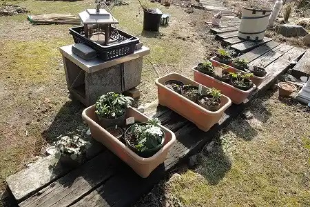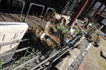 雪囲いを取り、簡易温室から植物を取りだしました