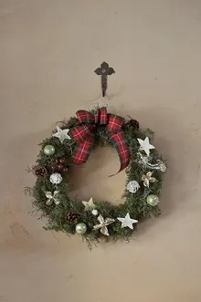 サツマ杉とアトリエ前に植えてあるブルーアイスを使ってリースを作っていただきました。