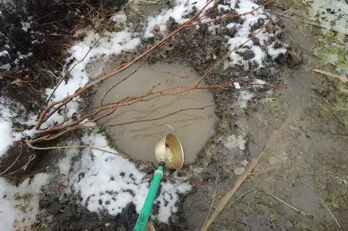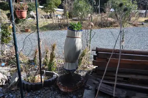 マルバノキdiv>パンパスグラスでマルチング 100均のござを利用の雪囲い