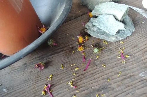 きっと口中渋くてたまらなかったはずだとほくそ笑んでいたら玄関に置いておいた菊の花が