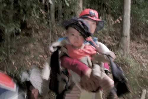 もちろん足元ビーサンでした。母は強し、一人でおんぶして登り切りましたよ。