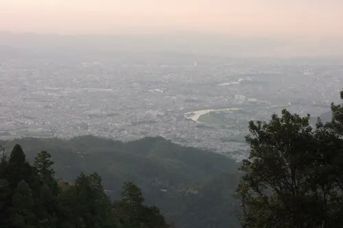 登る時、夜景が見えていた当たりはすでに夜が明け出してます。(京都タワーも見つけることができました)