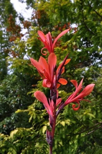 入るときにはブラックランナーに気を取られて気がつかなかったけどこのカンナの花端正です。なんでしょう?