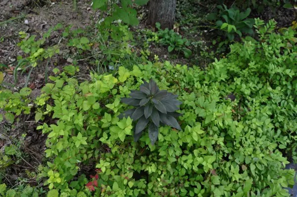 切り株の洞にヒトツバ(シシバ?)これは、まねできそう