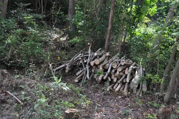 台風のための倒木でしょうか、同時期に集落で倒れた木と同じ種類のようです。薪にと払い下げてもらったのですがとても固い木でした。