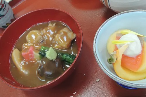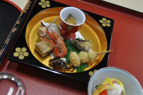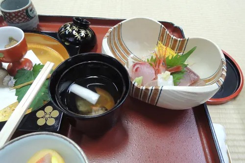 2.椀物(わんもの) ・・・ 吸い物 3.向付(むこうづけ) ・・・ 刺身
