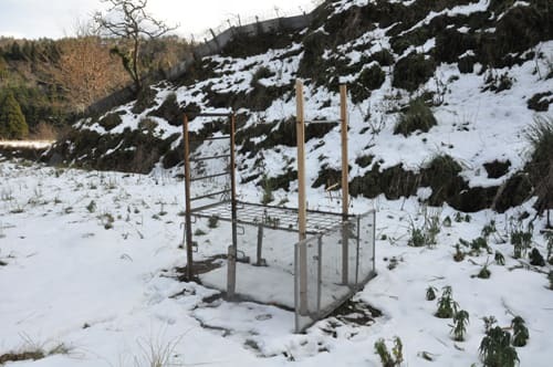 庭は何とか雪を迎え撃つ準備は完了しました。バラはござでくるんで早春に仕立て直す予定