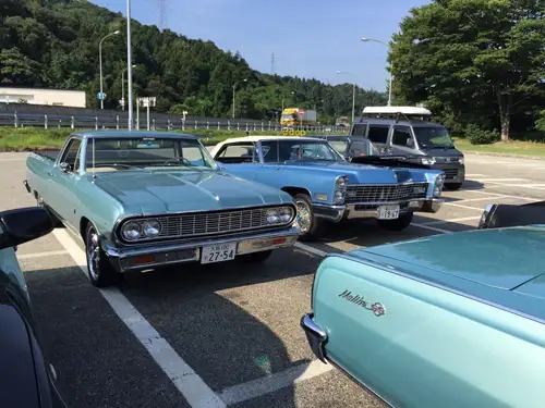 北陸自動車道で見かけたクラシカルなアメ車軍団