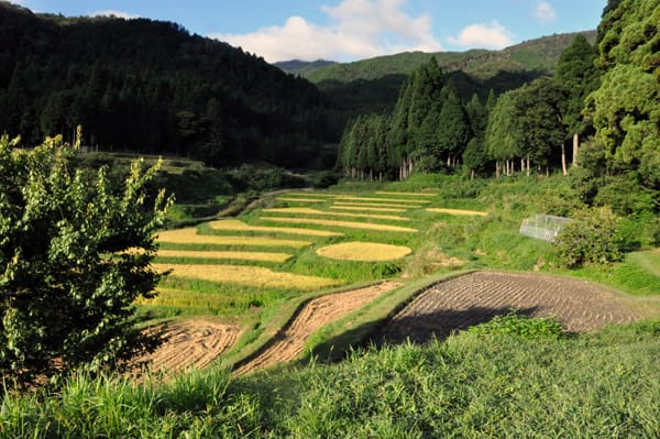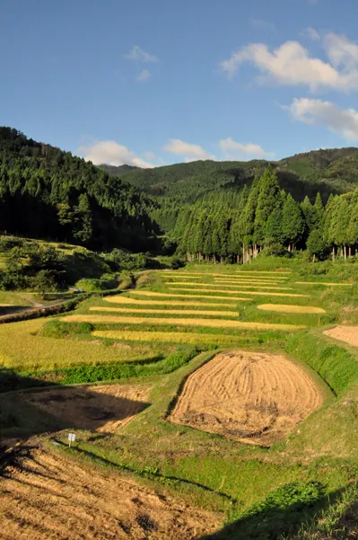 台風で延びていた棚田の田刈り、急ピッチで進んでいます。