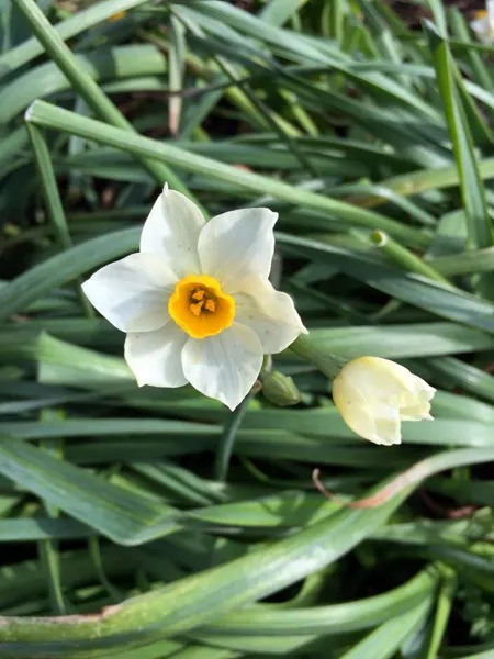 かろうじて見つけた一輪。今年の暖冬で水仙祭り開催中にもかかわらず、花はすっかり終了してました。