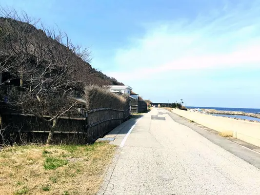 NHKの朝ドラまれでおなじみ間垣は、高さ約5mの苦竹や真竹を割ったものを隙間なく並べた垣根、冬の日本海から吹きつける季節風から家屋を守り、夏の暑い西日をさえぎるなどの効果があるそう。