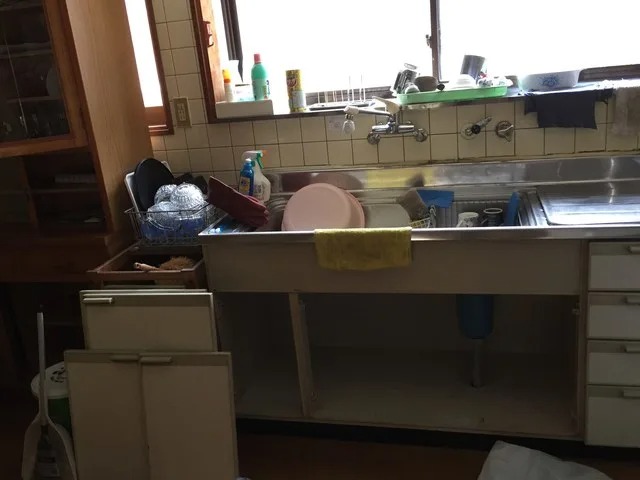 この台所は10年間放置のため壁にはカビがびっしり、リフォーム中も頭が痛くなるくらいでした。ふっ~!