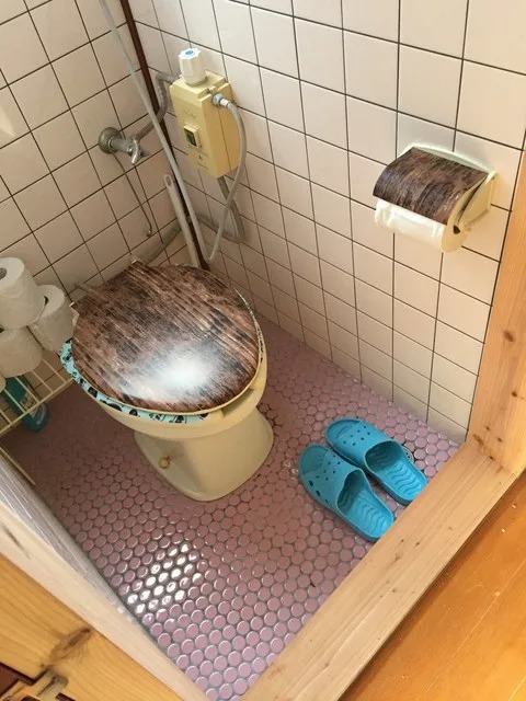 トイレは簡易水洗。集落は完全水洗なのですがここは資金不足なので、出来る範囲でリメイク。
