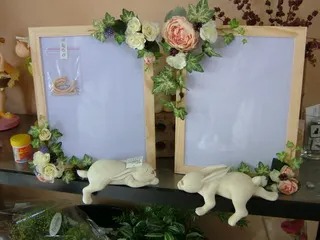 ご注文いただいたアートのアレンジの残りでボードに飾り付けしてみました。