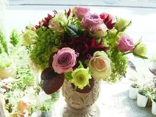 山本忠敬さんのアトリエにお届けした薔薇とダリアとアナベルのアレンジです。