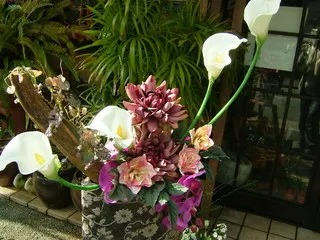 流木と阿蘭陀海芋(カラー)のアレンジ