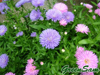 これ、可愛いです。本来はクジャクアスターの矮性種なのですがあえて大株に仕立ててあります。