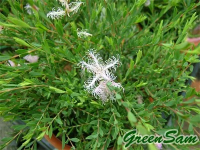 花がふわふわでとってもキュート。切り花や寄せ植え用の葉物としてのメラリューカは知っていましたが花つきは初めてみました。