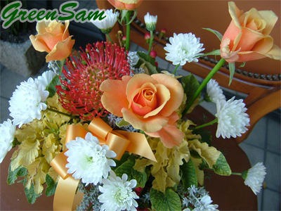 秋だからマム 投稿日 2009年10月23日 著者 Hashimoto Masako カテゴリー 花束・アレンジ 朝晩は冷え込むのですが本日日中、小春日和です。 気温の日較差が多いこの時期、風邪をひきやすいのでご注意。 このところ、明け方の最低気温を更新中ですがおかげで朝布団から出るのが辛いです。 今からこれでは先が思いやられますよね~m(。・ε・。)m 京都山科 花屋 花と緑のグリーンサム