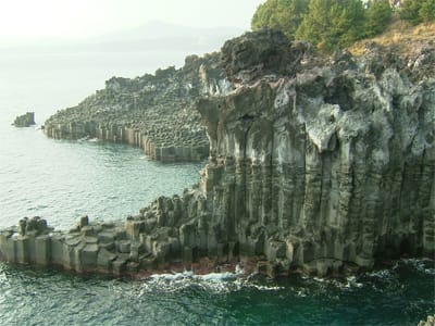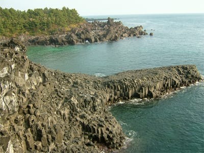 済州島は、火山が噴火してできた島なので海岸ではこのような風景がよく見られます。
