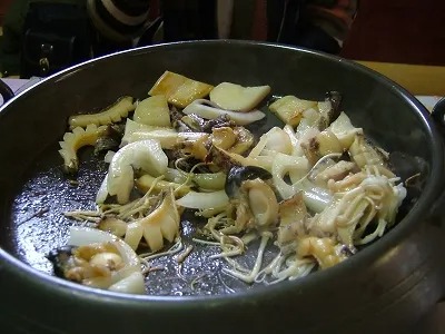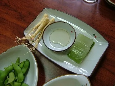 前菜の朝鮮人参とアロエベラ 蜂蜜をつけて食べます