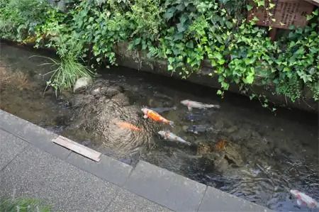 いがわ小道を流れる水路には鯉やアマゴがスイスイ