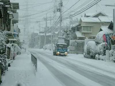 雪に慣れていないノーマルタイヤの車が道路をふさいでしまったようです