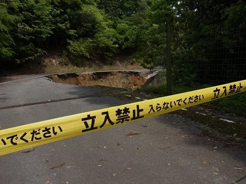 週末やって来た棚田の家の林道が先週の台風2号で崩落してしまいました