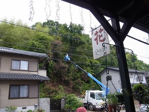10メートルはあろうかという大木をチェーンソーで切り倒しているのですが