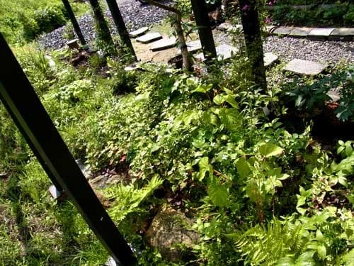 回廊の下の山野草たちはわっさわっさ繁茂してました