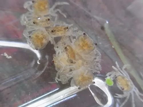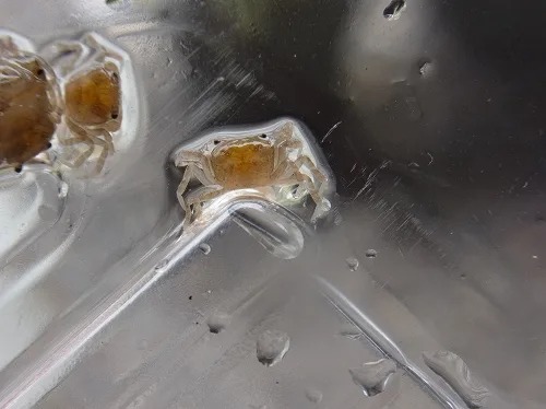 お腹に子ガニが群がっていたのでゆすって落としてみました