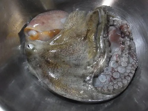 瀬戸内みやげにタコ(生きてます)、シャコ(これも生きてました)、アナゴの三種を購入