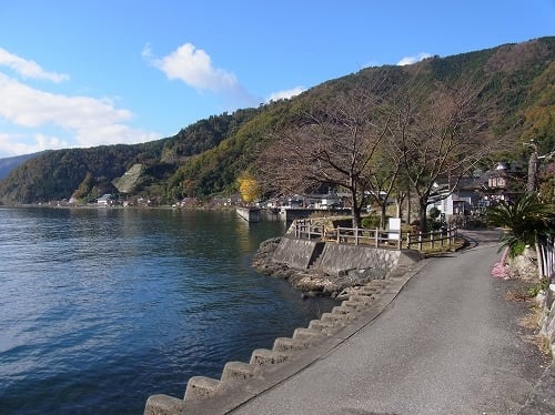 目の前が琵琶湖、裏には山が迫る細長い集落